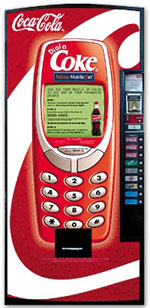 在澳大利亞,澳大利亞電訊和可口可樂(lè)公司聯(lián)合發(fā)布了一項(xiàng)新業(yè)務(wù)的試運(yùn)營(yíng):“撥打可口可樂(lè)”。這項(xiàng)新業(yè)務(wù)使該公司的后付費(fèi)移動(dòng)電話(huà)客戶(hù)可以使用他們的GSM移動(dòng)電話(huà),在可口可樂(lè)售貨機(jī)上購(gòu)買(mǎi)他們喜愛(ài)的飲料。這次試驗(yàn)在悉尼中央車(chē)站的17臺(tái)可口可樂(lè)售貨機(jī)上進(jìn)行。
