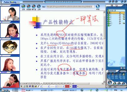 據(jù)該公司技術(shù)總監(jiān)李明先生介紹,Active Meeting2004是為了迎合寬帶運(yùn)營(yíng)而專門設(shè)計(jì)開(kāi)發(fā)的。首先,服務(wù)器引用"級(jí)聯(lián)"方式,通過(guò)系統(tǒng)服務(wù)器端Active Center的"平衡分流"設(shè)計(jì),使得任何單位的會(huì)議和交流能夠流暢的進(jìn)行。