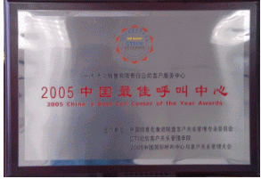 2005中國(guó)最佳呼叫中心 " ,是汽車(chē)行業(yè)中唯一一個(gè)連續(xù)兩年獲此殊榮的客戶(hù)服務(wù)中心?蛻(hù)服務(wù)中心荊青春代表上臺(tái)領(lǐng)獎(jiǎng)。