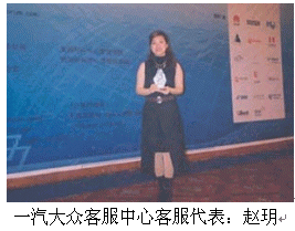 一汽大眾客服中心主任趙荊璞由于其在客戶(hù)服務(wù)方面的杰出貢獻(xiàn)被評(píng)為"2005中國(guó)最佳呼叫中心管理人",并作為獲獎(jiǎng)代表在大會(huì)上發(fā)了言。?