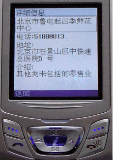 用戶只要在手機(jī)的"空中搜"中輸入相關(guān)企業(yè)名稱的一部分信息,例如:新鄉(xiāng) 第二百貨公司,或者輸入產(chǎn)品服務(wù)的名稱,例如:快遞,餐飲,就會搜索到符合其要求的一組企業(yè)信息,少則數(shù)條,多達(dá)數(shù)十條,點擊任意一個,都會出現(xiàn)詳細(xì)的相關(guān)信息,信息中包括企業(yè)的電話、地址、企業(yè)介紹等。這樣的一次搜索需要的費用是由搜索產(chǎn)生的數(shù)據(jù)流量費,費用是一分錢,時間是幾秒,信息服務(wù)的提供完全免費。