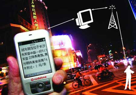編輯你所要尋找對象的手機(jī)號(hào)碼發(fā)送到一個(gè)指定的號(hào)碼“05058”,就能立刻掌握機(jī)主所處的準(zhǔn)確位置——這聽起來比重案組破案還要玄,但現(xiàn)在已成現(xiàn)實(shí)。