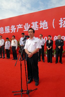 日前,江蘇信息服務(wù)產(chǎn)業(yè)基地(揚(yáng)州)首發(fā)項(xiàng)目開工典禮在廣陵新城隆重舉行,這標(biāo)志著產(chǎn)業(yè)基地建設(shè)邁入了實(shí)質(zhì)性階段。揚(yáng)州市人民政府市長(zhǎng)王燕文和天津泰達(dá)公司董事長(zhǎng)劉惠文為奠基石揭幕,市委常委、常務(wù)副市長(zhǎng)王榮平致賀詞,江蘇省信息產(chǎn)業(yè)廳副廳長(zhǎng)龔懷進(jìn)出席了開工典禮。