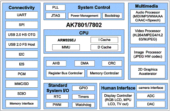 AK36系列PND方案的硬件架構(gòu)由AK36系列外接GPS模塊或芯片組組成,搭配MLC Nandflash海量存儲。軟件方面采用安凱自主研發(fā)的輕量級操作系統(tǒng)實(shí)現(xiàn)系統(tǒng)和多媒體等主要功能,內(nèi)置凱立德V3.0的導(dǎo)航版本。據(jù)安凱稱,該方案具有系統(tǒng)成本低、加工簡單、低功耗、平臺穩(wěn)定且開放性好、卓越的搜星性能等優(yōu)勢。