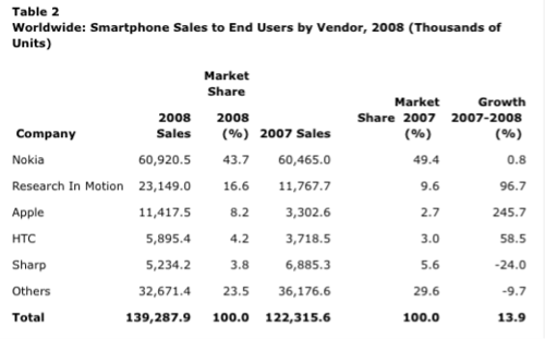 2007年6月29日,iPhone如期發(fā)布,其強勢的綁定分成模式曾遭到了來自各路分析師的質疑,然而這些都沒有擋住它的熱銷, 市場調研機構Gartner報告顯示,截至2008年底,蘋果在全球范圍內共計銷售了約1200萬部iPhone ,整年銷量增長245%,是全球智能機銷量增幅最大的手機。