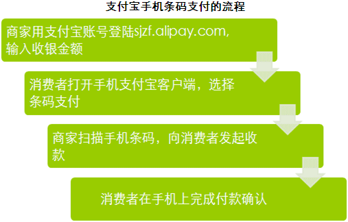 ① 支付成本低。不同于不斷上漲的刷卡成本,支付寶手機(jī)條碼支付只需一臺可上網(wǎng)筆記本以及一只支付寶免費(fèi)提供的掃描槍(或一部可上網(wǎng)的智能手機(jī))即可完成交易。