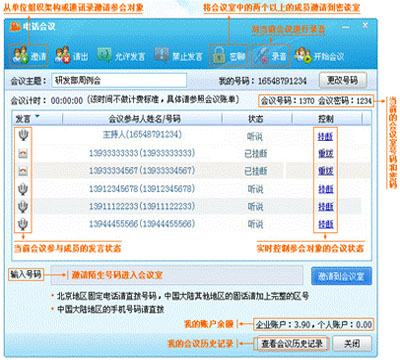 特別是其高清語(yǔ)音/電話會(huì)議功能,竟然具備了CD級(jí)水晶音質(zhì),只需撥打?qū)Ψ椒謾C(jī)號(hào)碼(Simba企業(yè)分機(jī))即可找到分布在全國(guó)各地的同事,天涯也在咫尺;并且安全、免費(fèi);而且企業(yè)無需任何設(shè)備投入,無需向運(yùn)營(yíng)商申請(qǐng),即開即用。通過Simba客戶端發(fā)起:無需繁瑣的電話按鍵操作,輕松邀請(qǐng)對(duì)方加入會(huì)議;可設(shè)立會(huì)議密談室,秘密話題會(huì)議中其他成員無法聽到;也可主持會(huì)議,隨時(shí)邀請(qǐng)成員,隨時(shí)將某成員請(qǐng)出會(huì)議室。