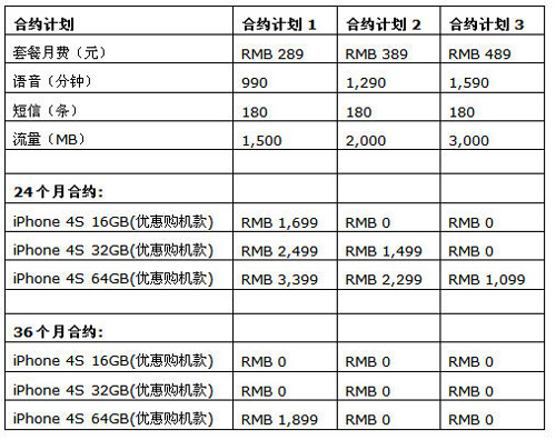 圖:中國(guó)電信iPhone 4S合約計(jì)劃