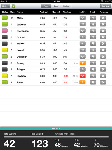 北京時(shí)間2月23日消息,《移動(dòng)新發(fā)現(xiàn)》今日報(bào)道,F(xiàn)ireSpotter公司新推出的NoshList(nosh.com/list)是一款餐館等位iPad應(yīng)用,餐館方面只需依次輸入排隊(duì)用戶的手機(jī)號(hào)碼,就能自動(dòng)向快要排到的用戶發(fā)送呼叫提醒信息。
