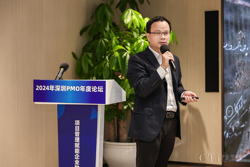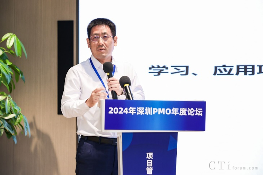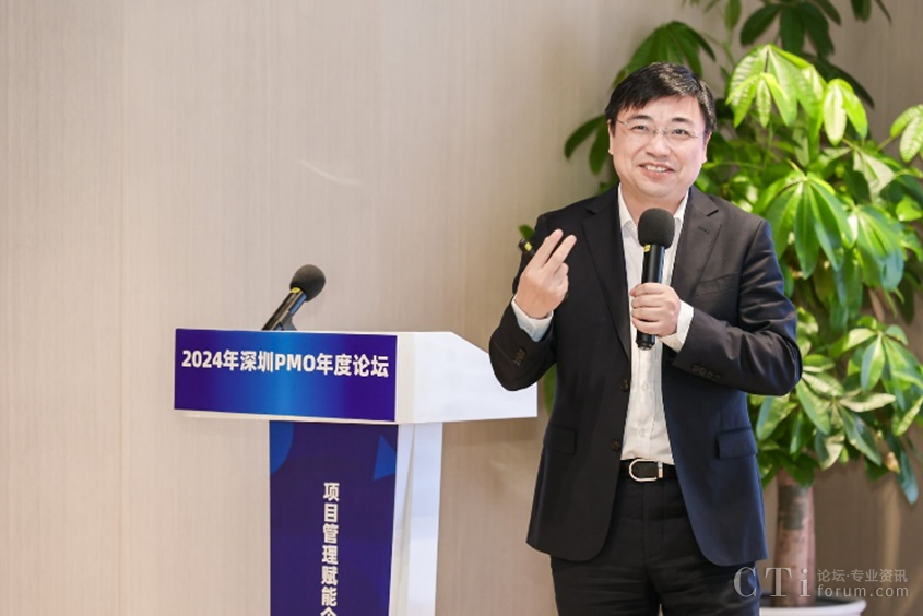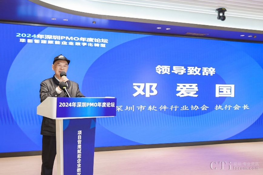 深圳市軟件行業(yè)協(xié)會執(zhí)行會長鄧愛國發(fā)表了熱情洋溢的致辭。他強(qiáng)調(diào)了PMO在數(shù)字化轉(zhuǎn)型中的關(guān)鍵作用,并表達(dá)了對與會者們的熱烈歡迎和對論壇的殷切期望。他表示,PMO是項目管理中的重要角色,承擔(dān)著承上啟下的作用,對于企業(yè)數(shù)字化轉(zhuǎn)型的成功至關(guān)重要。