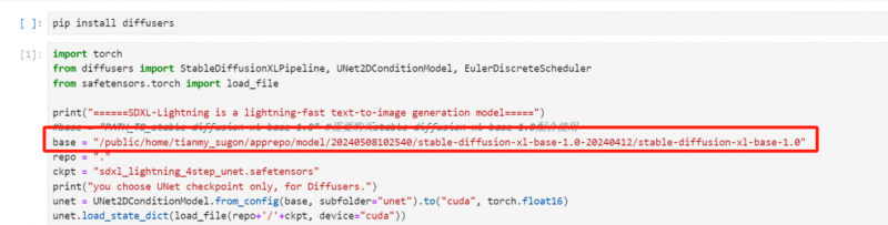 第三步,商城首頁(yè)中選擇 SDXL-Lighting 系列模型商品,免費(fèi)購(gòu)買后點(diǎn)擊“一鍵試用”。進(jìn)入notebook頁(yè)面后選擇“Python3.9”內(nèi)核,將第二步復(fù)制路徑粘貼到代碼的 base 變量中,點(diǎn)擊保存。