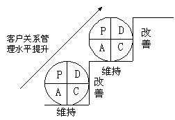 容,而PDCA環(huán)在客戶關(guān)系管理中不斷循環(huán)的結(jié)果就是企業(yè)客戶關(guān)系管理水平的不斷推進(jìn),這個(gè)過程可以用上圖表示。 |