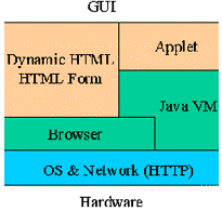 Dynamic HTML可以很好地進(jìn)行公開信息的發(fā)布,通過(guò)HTML Form機(jī)制可以從瀏覽器中得到用戶檢索等簡(jiǎn)單操作的輸入信息。對(duì)于無(wú)須身份認(rèn)證、訪問控制的內(nèi)容,在Web Server上可以使用通常的CGI技術(shù)獲取用戶的請(qǐng)求、查詢條件,通過(guò)Web Connector還可以使用應(yīng)用服務(wù)其提供的后臺(tái)服務(wù),結(jié)果使用HTML方式描述,并可直接回送到客戶端的瀏覽器。如果進(jìn)一步使用Applet技術(shù),還可以在客戶端實(shí)現(xiàn)更為友好的交互式顯示模式。無(wú)論是使用DHTML技術(shù)還是HTML Form加上Server方擴(kuò)展(如CGI, ISAPI, NSAPI, fastCGI和servlet等)。它們適合處理的業(yè)務(wù)都是每次請(qǐng)求/應(yīng)答基本獨(dú)立,相互無(wú)關(guān)聯(lián)的情況。對(duì)于一些更為復(fù)雜的應(yīng)用,要求前后操作具有相關(guān)性,客戶與服務(wù)器端各自保持狀態(tài)的變化且狀態(tài)是相關(guān)的。在這種情形之下,更好的解決方案是將客戶端的所有操作保持在一個(gè)Applet中完成,由Applet直接與Web Server交互數(shù)據(jù)來(lái)完成請(qǐng)求/應(yīng)答數(shù)據(jù)的交互。
