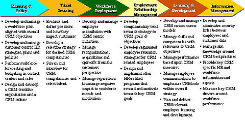 下面的圖表表示的是相對于特定CRM考慮的HR價值鏈。通往成功的CRM的道路無疑將從“人”中穿越而過。