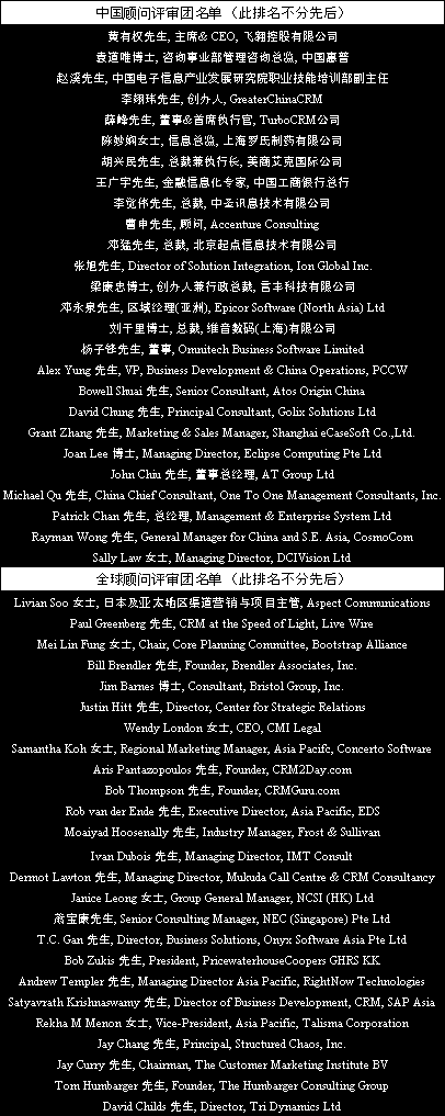 五、 權(quán)威性。GreaterChinaCRM邀請該機構(gòu)50多位(包括中國和外國)最權(quán)威的CRM專家擔(dān)當此次評選的評審團。