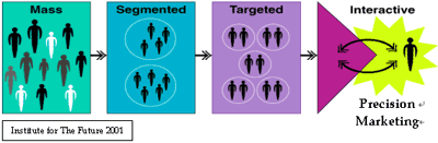 首先,互聯(lián)網(wǎng)的出現(xiàn)改變了營銷的概念,為大規(guī)模定制創(chuàng)造了空前的機遇。隨著富裕而又有辨別能力的中產(chǎn)階級的逐漸壯大,預(yù)先營銷的期望以及針對個人的解決方案日益成為一種標準。從記住他們的行為&偏好并為他們發(fā)送相關(guān)產(chǎn)品信息 (例如Amazon.com) …到幫助他們得到自己理想中的產(chǎn)品 (例如Dell.com,) ,CRM觀念的關(guān)鍵之處就在于為客戶提供符合他們需求的產(chǎn)品/服務(wù)而不是向他們推銷你的東西。互聯(lián)網(wǎng)使你能夠與客戶建立學(xué)習關(guān)系,從銷售轉(zhuǎn)移到解決問題。互聯(lián)網(wǎng)上的CRM已經(jīng)上升到了另一個高度。