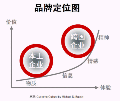 客戶體驗是客戶關系管理的重要組成部分。根據(jù)過去數(shù)年評選中國最佳CRM實施企業(yè)所作的分析,本土與外資企業(yè)在企業(yè)體檢中各項主要評分中有較大差距,其中之一是客戶體驗(-7.1分,見圖一、本土與跨國企業(yè)之差距)。本土企業(yè)若只提供低層次的客戶體驗,只為客戶帶來低價值,也只能打價格戰(zhàn)、做代工,很難做大做強打通全球市場。做好品牌,其實再深入一點說就是要做好客戶體驗,價值(價格)才會上去(見圖二、品牌定位)。