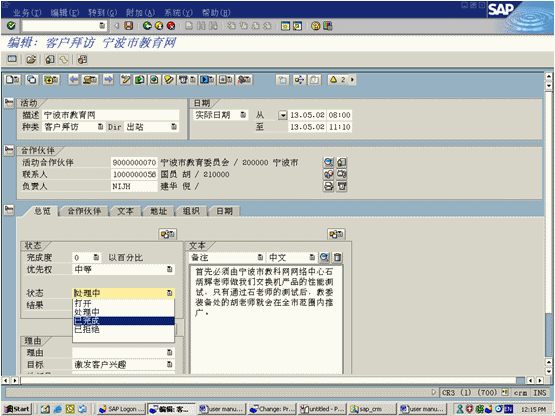 Explorer的層級(jí)樹(shù)結(jié)構(gòu)顯示客戶(hù)間的業(yè)務(wù)關(guān)系。通過(guò)報(bào)價(jià)菜單選項(xiàng)中預(yù)定義報(bào)價(jià)信息使用訂單輸入功能?梢赞D(zhuǎn)化成為訂單,后臺(tái)功能與SAPR/3集成可以實(shí)現(xiàn)。