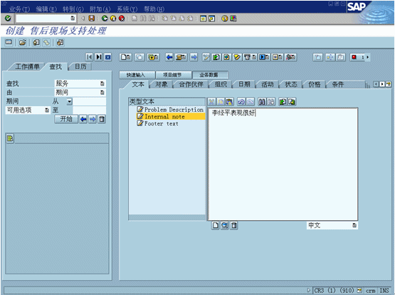 客戶(hù)服務(wù)功能包括記錄抱怨相關(guān)的事件信息或錯(cuò)誤描述概況。資源規(guī)劃工具允許用戶(hù)察看事件相關(guān)的員工和資源的可用性,F(xiàn)場(chǎng)服務(wù)功能可以通過(guò)與可以使用WAP的設(shè)備、Palm、Pilot、PAQ