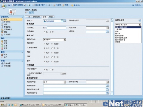 Dynamics CRM 4.0的聯(lián)絡(luò)人,除基本信息之外,還可以針對(duì)偏好的聯(lián)絡(luò)方式、活動(dòng)記錄、次要聯(lián)絡(luò)人或者商機(jī)管理等,儲(chǔ)存更詳細(xì)的記錄。