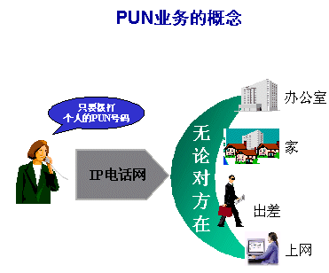 個(gè)人統(tǒng)一號(hào)碼業(yè)務(wù)是一種購(gòu)筑在IP網(wǎng)上的全新通信網(wǎng)絡(luò)業(yè)務(wù),該業(yè)務(wù)給人個(gè)分配一個(gè)終身號(hào)碼,利用此號(hào)碼,用戶(hù)可以利用現(xiàn)有通信網(wǎng)絡(luò)的各種終端進(jìn)行通信,這種業(yè)務(wù)可以給用戶(hù)帶來(lái)多方便的利益,首先主叫用戶(hù)只需記住被叫方唯一的號(hào)碼即PUN,就可實(shí)現(xiàn)3W通信(任何地方、任何點(diǎn)間、任何人)之間的通信,對(duì)被叫方,可以利用現(xiàn)有的任何通信手段,如固定電話(huà),移動(dòng)終端,PC機(jī)、分組終端、語(yǔ)音郵箱等進(jìn)行通信,并可以按方便和節(jié)省資費(fèi)等原則,靈活設(shè)置對(duì)不同終端的利用,如用戶(hù)上網(wǎng)時(shí),即可以利用PC進(jìn)行通話(huà),解決了上網(wǎng)打電話(huà)的問(wèn)題,或者在有多種通信手段可以選擇的時(shí)候,可以方便地選擇利用資費(fèi)較低的通信手段,此外,由于該網(wǎng)絡(luò)是架構(gòu)在IP之上,因此,在長(zhǎng)途業(yè)務(wù)不僅可以方便地通信,而且可以享受到IP電話(huà)的低資費(fèi)。