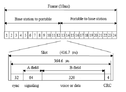 DECT協(xié)議體系與開放系統(tǒng)互連(OSI)參考模型的較低層密切相關(guān)。DECT有一個物理層,一個數(shù)據(jù)鏈路層及一個網(wǎng)絡(luò)層。數(shù)據(jù)鏈路層是由媒體訪問控制(MAC)層和數(shù)據(jù)鏈路控制(DLC)層組成的。