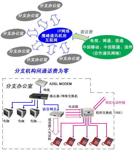 某跨國(guó)公司A(因涉及客戶商業(yè)保密原因,故隱去真實(shí)名稱),在中國(guó)目前共有40多家分公司及辦事機(jī)構(gòu)。其不同分公司及辦事機(jī)構(gòu)之間需要大量的語(yǔ)音通信支持業(yè)務(wù)往來(lái),話音通信主要是通過(guò)傳統(tǒng)的電話方式,即不同機(jī)構(gòu)將使用的不同類型的PBX(數(shù)字程控交換機(jī))接入本地電話公網(wǎng),通過(guò)電信公司的固定長(zhǎng)途網(wǎng)進(jìn)行通話。與此同時(shí), A公司各不同機(jī)構(gòu)都有與遍布各地的用戶經(jīng)常溝通的需求,此種通信方式使得整個(gè)A公司要支付巨額電話費(fèi)用。更重要的是,A公司目前此種通信方式不便于整個(gè)語(yǔ)音通信系統(tǒng)的統(tǒng)一管理及維護(hù),更不利于整個(gè)公司以一個(gè)統(tǒng)一的公司形象對(duì)外。