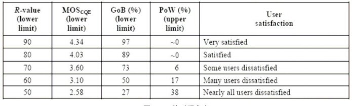 G.113 Appendix I,找到合適的Ie和Bpl值);第五步:根據(jù)終端類型,確定A值;第六步:計算R值,根據(jù)R和MOS的對照關(guān)系表,得到MOS值。