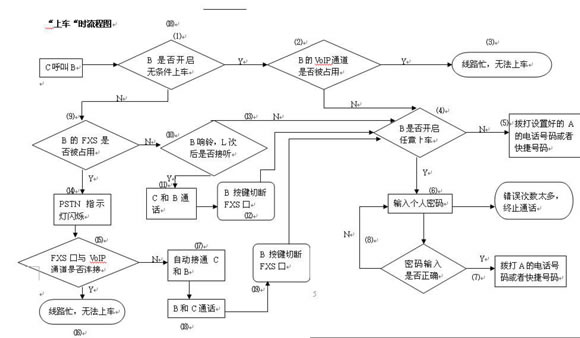 - 若A是為了下車,則B端接聽(tīng)方按鍵“*#*”切斷FXS通路,然后進(jìn)入⑷--⑻。