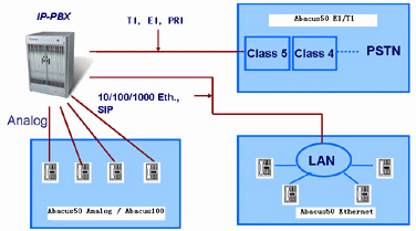 Abacus50系列產(chǎn)品分為Abacus50-Analog,Abacus50-E1/T1,Abacus50-Ethernet。其中,Abacus50-Analog具有2個(gè)FXO模擬接口,可以支持Loop-Start模擬協(xié)議,并支持MOS/PSQM/PESQ語(yǔ)音質(zhì)量分析;Abacus50-Analog支持的媒體方式包括音調(diào),話(huà)音,V.34Modem,T.30傳真等。Abacus50-E1/T1具有4個(gè)E1或者T1接口,可以支持SS7,ISDN-PRI,V5.1/V5.2,CAS(隨路信令)等PSTN信令,并支持MOS/PSQM/PESQ語(yǔ)音質(zhì)量分析;Abacus50-E1/T1支持的媒體方式同樣包括音調(diào)、話(huà)音和T.30傳真等。Abacus50-Ethernet具有兩個(gè)Ethernet接口(GE光口或者10/100/1000M電口),可以支持SIP/H.323/MGCP/H.248等VoIP協(xié)議,并支持MOS/PSQM/PESQ語(yǔ)音質(zhì)量分析;Abacus50-Ethernet支持的媒體方式包括音調(diào),G.711/G.723/G.726/G.729/AMR/AMR-WB/EVRC話(huà)音,T.30/T.38傳真,H.263/H.264視頻等。