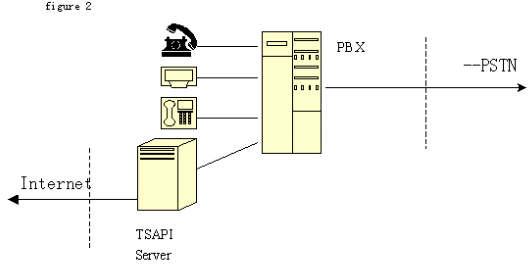 2、TSAPI技術標準:由Novell公司開發(fā)。它將程控交換機或中央電話系統(tǒng)與Netware網(wǎng)絡集成在一起。可以實現(xiàn)呼叫轉(zhuǎn)移,交互式語音(IVR)和自動呼叫分配(ACD)等功能。支持包括Windows各種版本、OS/2和Unix等目前主要操作系統(tǒng)。不同于TAPI ,TSAPI在計算機和桌面之間建立一個邏輯的連接,通過這些連接在任一端的TSAPI應用就可以完成呼叫控制。由于TSAPI主要為Netware網(wǎng)操作系統(tǒng)增加電話服務,不在每個電話和PC之間建立直接的連接,而是由一個電話服務器Netware可加載模塊(NLM)、一個電話服務器API(TSAPI)、一個電話服務器庫和一個電話客戶庫組組成在服務器電話系統(tǒng)間建立的連接,因此這個連接也稱為PBX-To-Server連接。電話服務器 NLM是負責 PBX和 Netware服務器間傳送信息的。電話服務器 API是為運行于服務器上的應用提供電話服務器API。三方連接在客戶--服務器組網(wǎng)中比單方連接有更大的靈活性。網(wǎng)上的每個用戶都可迅速地通過現(xiàn)有的LAN基礎結構撥入PBX。對其他服務的接入,如主機或終端仿真、傳真、E-mail等,都可以通過CTI接口獲得,只要這些業(yè)務已經(jīng)存在于網(wǎng)上。結構如圖:
