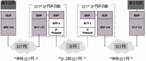 就是兩個PSTN網(wǎng)絡(luò)之間通過IP網(wǎng)絡(luò)連接起來,PSTN網(wǎng)絡(luò)間的SS7信令信息通過IP網(wǎng)透明地傳送到對方。這樣做的目的是:不管呼叫是通過基于電路的PSTN還是通過VoIP網(wǎng)絡(luò),都能向用戶提供相同的隨時隨地的接入和業(yè)務(wù)功能集。另外,通過IP網(wǎng)傳遞SS7所需要的基礎(chǔ)傳輸設(shè)備成本明顯要比傳送傳統(tǒng)SS7所需要的基礎(chǔ)傳輸設(shè)備低得多。(參考圖9)