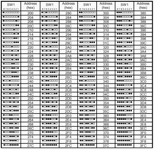 4個連續(xù)的I/O地址,可以在000h到3FCh范圍內(nèi)選用任意4字節(jié)的地址空間。
