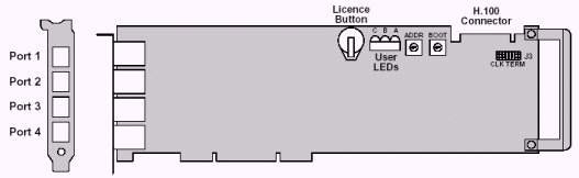 該卡上的H.100 CT(Computer Telepony)總線接口和數(shù)字交換技術(shù)允許時(shí)隙在E1/T1/J1接口、H.100