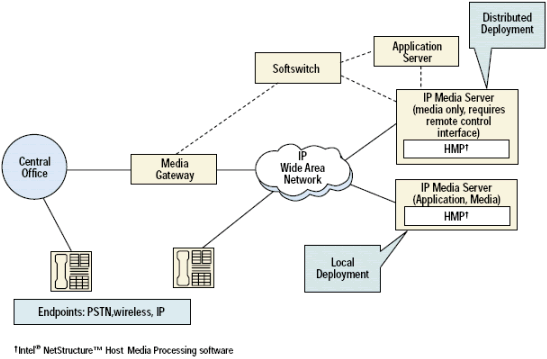 使用HMP軟件的典型的IP媒體服務器包括網(wǎng)絡語音提示, IVR, 語音郵件和會議服務器.