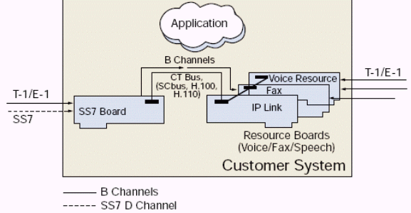 其它 T-1/E-1 通道被語(yǔ)音板卡管理,可通過(guò)CTbus路由到七號(hào)信令板卡