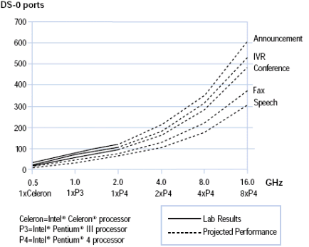 安騰處理器, 和Dialogic XScale微處理器架構(gòu)上.這會(huì)把通用計(jì)算平臺(tái)的性能價(jià)格比的優(yōu)勢(shì)帶到電信的媒體處理方案中.