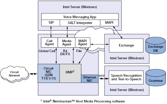Exchange, 和語(yǔ)音識(shí)別是使用第三方技術(shù)連接到微軟平臺(tái)上通過(guò)微軟語(yǔ)音編程接口(SAPI)或者直接連接到SALT解釋器.